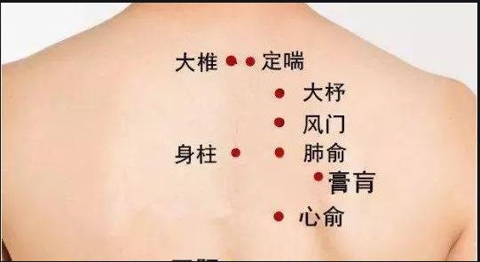 2咳嗽肺俞穴、大椎穴艾灸10~15分钟