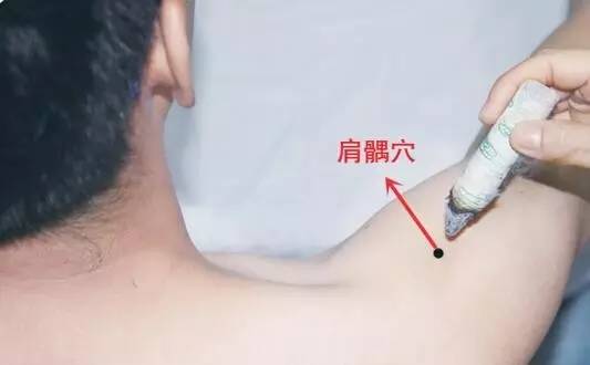 31肩周炎肩髃yú穴加阿是穴10~20分钟,不断找出阿是穴悬灸温煦可。